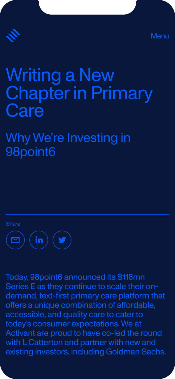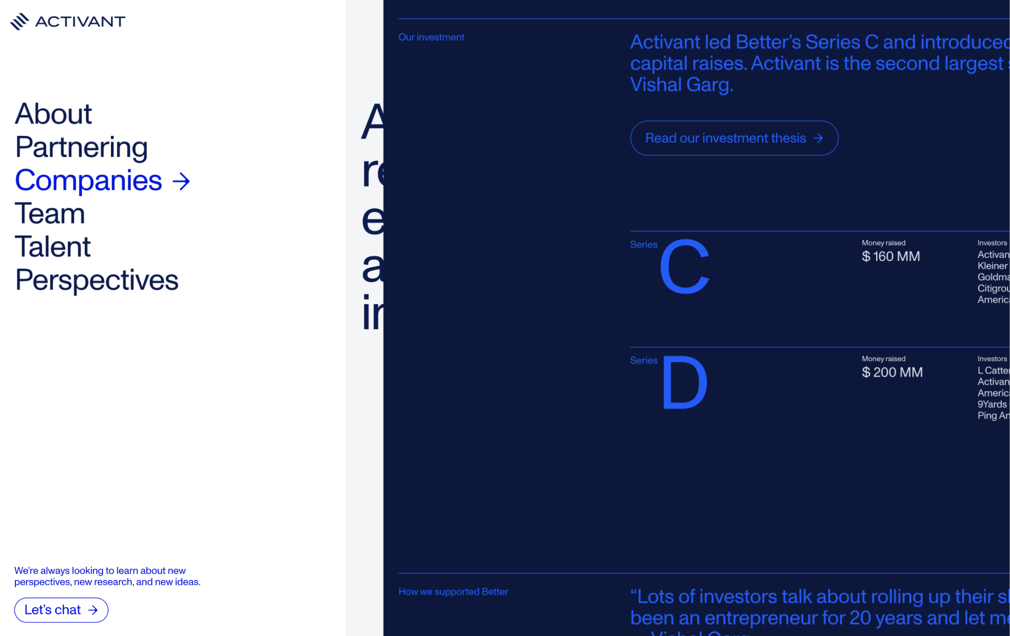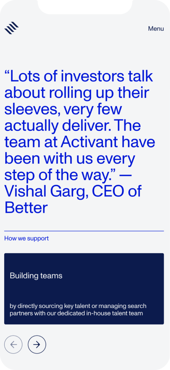 Activant is a global investment firm that partners with high-growth companies that are transforming commerce. As prospective company’s want to be associated with investment firms that understand their digital values, Activant required a website that showed a confident voice.